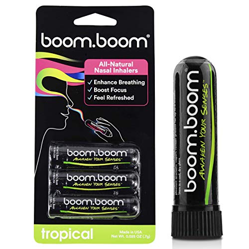 BoomBoom Nasal Stick (3 Pack) | Enhances Breathing + Boosts Focus | Breathe Vapor Stick Provides Fresh Cooling Sensation | Aromatherapy Inhaler Made with Essential Oils + Menthol (Tropical)