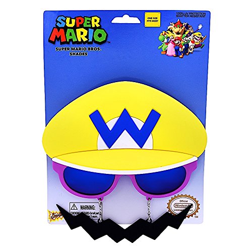 Sun-Staches Super Mario Yellow Wario Sunglasses Costume Accessory Nintento Party One Size FIts Most