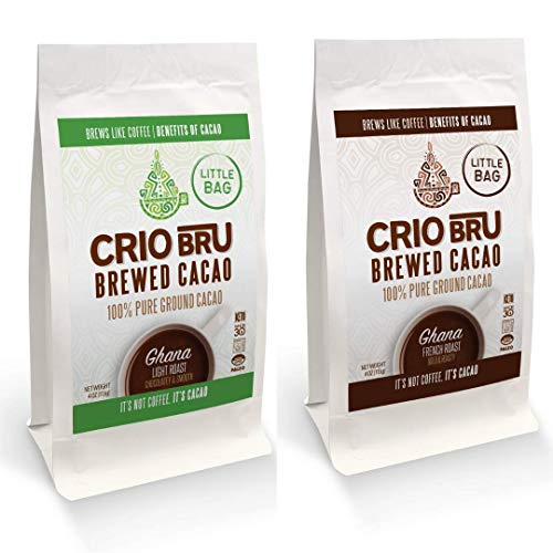 Crio Bru 2 Pack 4 oz Little Bag Ghana Bundle | Organic Healthy Brewed Cacao Drink | Great Substitute to Herbal Tea and Coffee | 99% Caffeine Free Gluten Free Keto Low Calorie Honest Energy