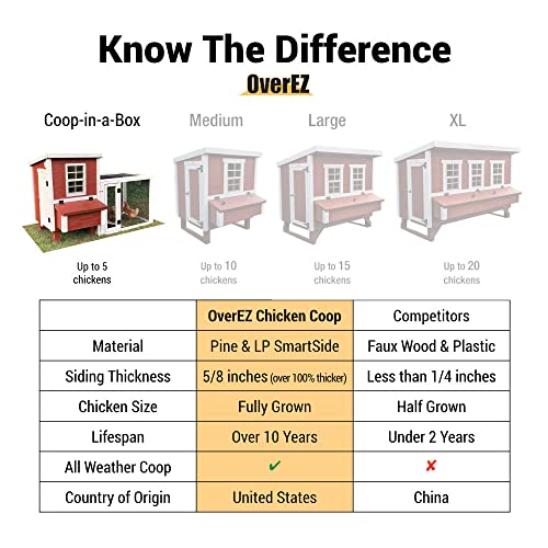 OverEZ Coop in a Box – Up to 5 Large Chickens, Nesting Box Included, UV-Treated & Rot-Proof Wood, Weather-Resistant, Detachable Run, American-Made Quality