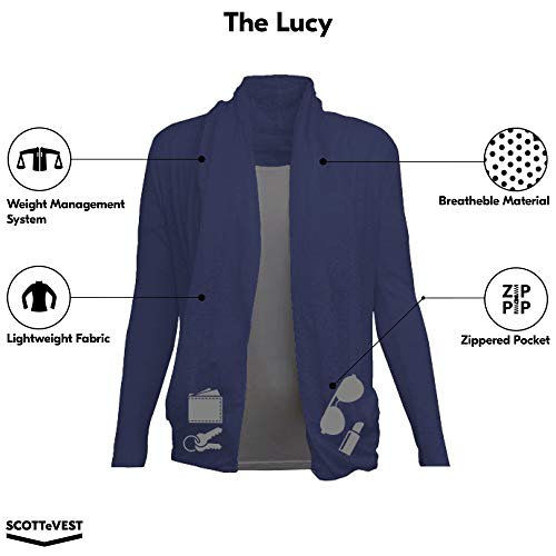 SCOTTeVEST Lucy Cardigan for Women – 4 Hidden Pockets – Lightweight Wrinkle-Resistant Sweater for Travel & More
