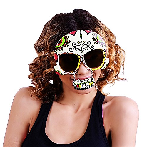 Sunstaches Day of the Dead Skull Sunglasses | Costume Accessory Mask | UV 400 | One Size Fits Most